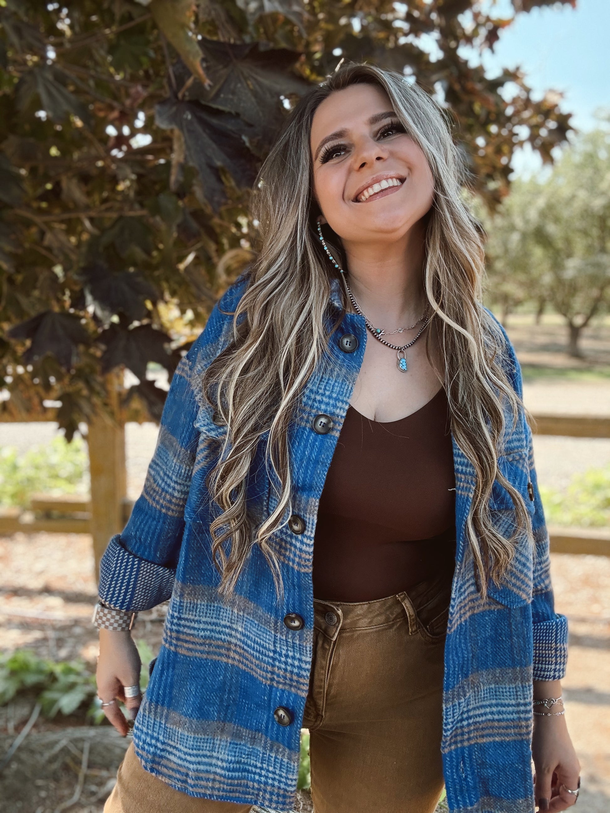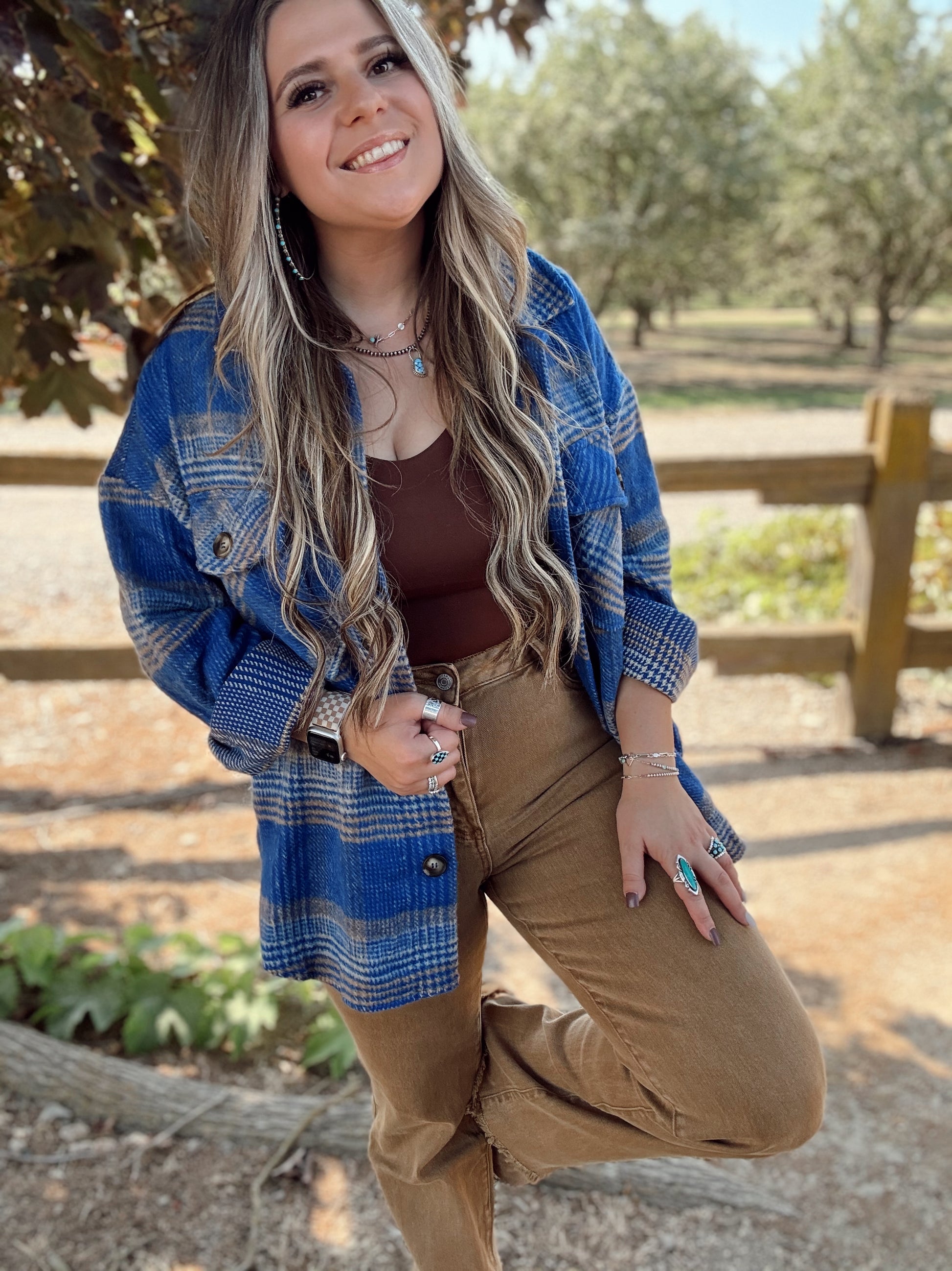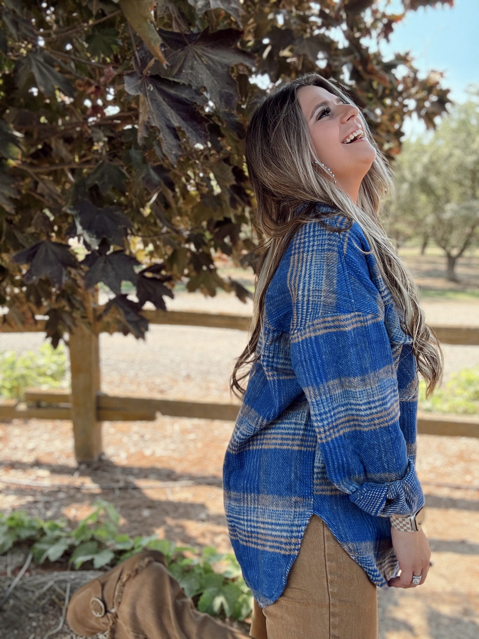 Fall Vibes Plaid Print Shacket 85% Polyester 15% Acrylic