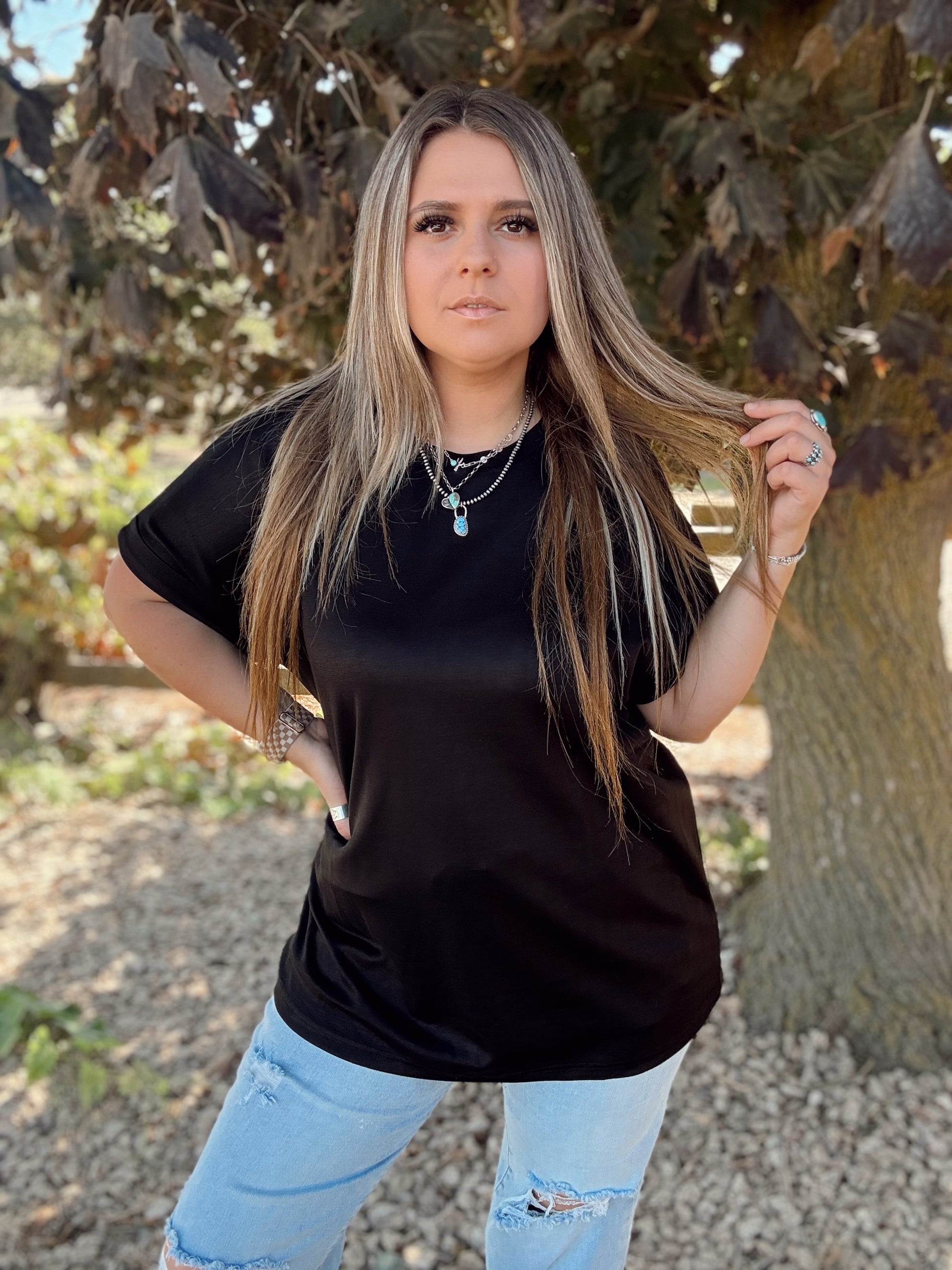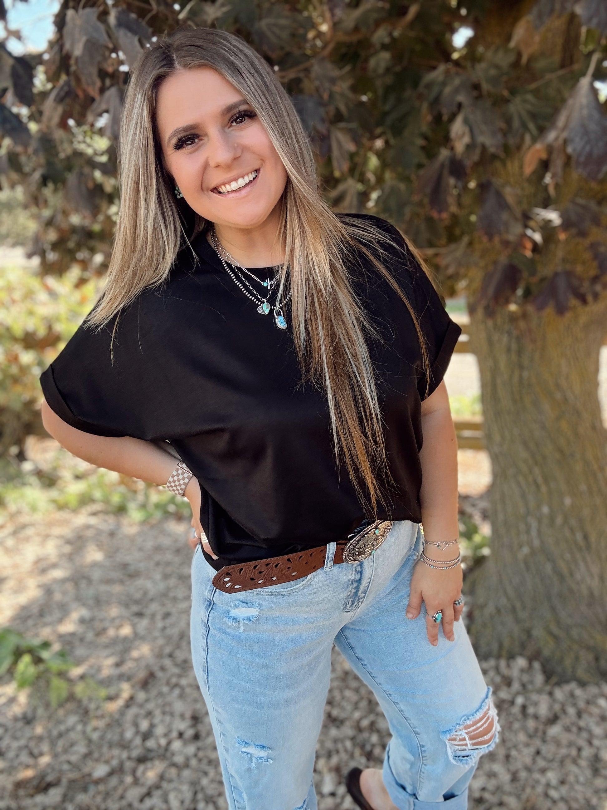 literally you will want to live in this shirt it is so soft..and in black?!! so versatile, and it can be paired with absolutely ANYTHING - basically the perfect "I look put-together but I'm actually super comfortable" shirt.