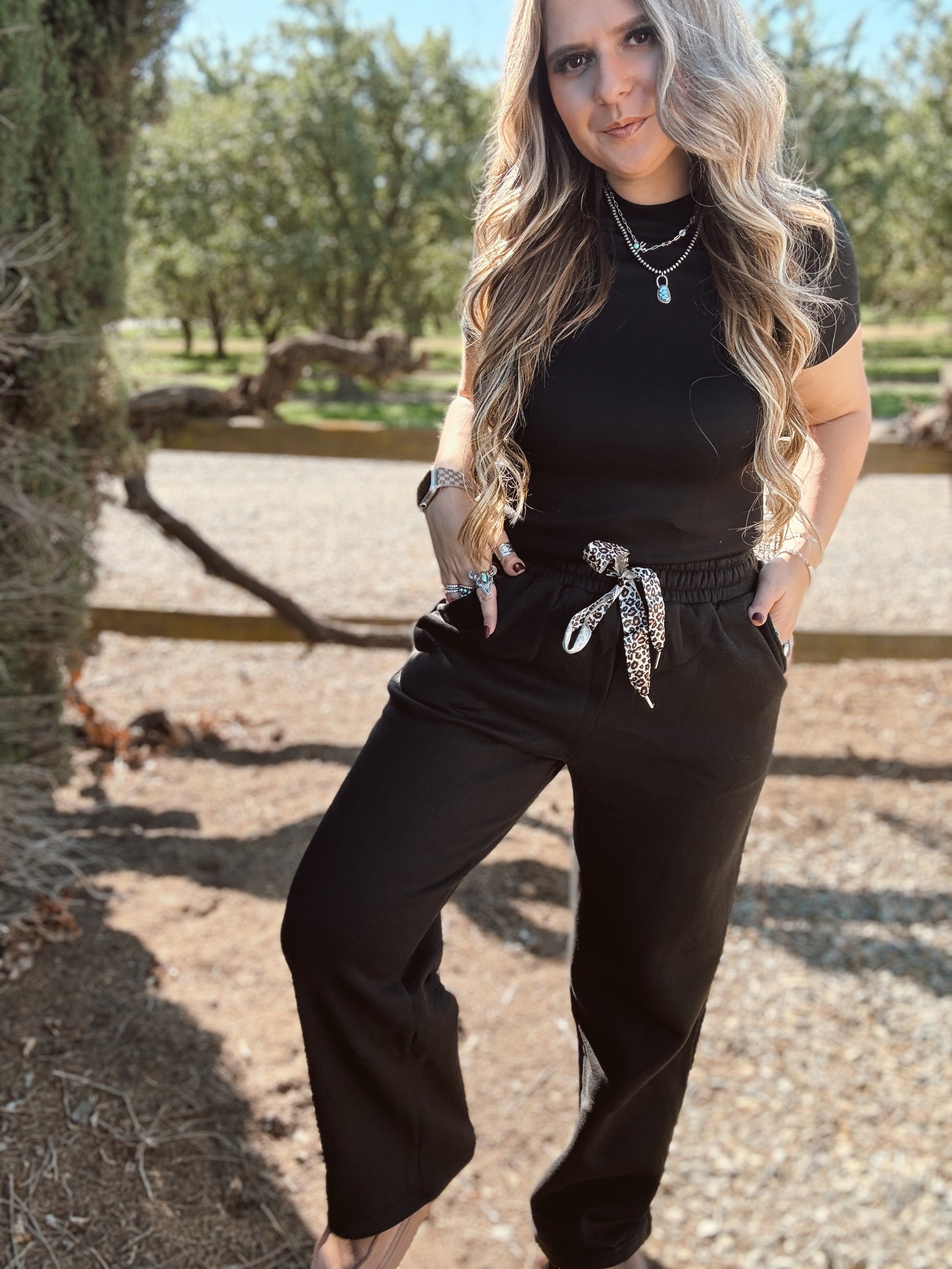 Cozy fleece lining – keeps you warm and comfy in cold weather. Leopard print drawstring accents – add a bold, stylish detail. Elastic high waist design – ensures a flexible and flattering fit. Casual yet chic – perfect for lounging, errands and travel etc.