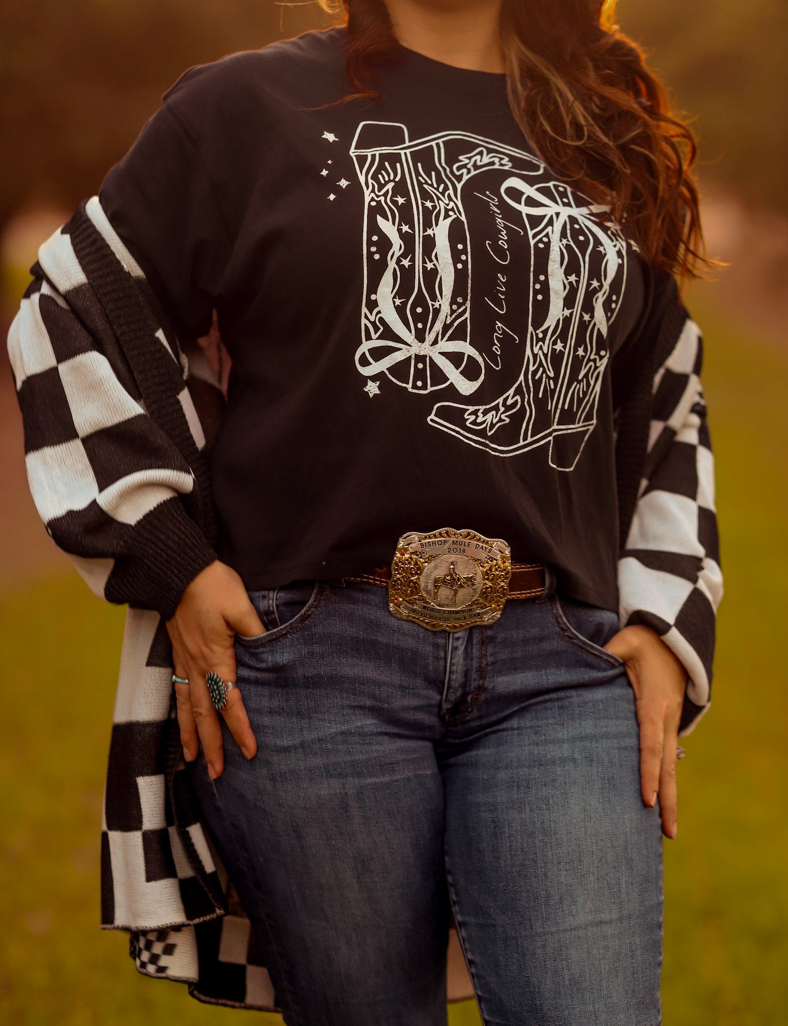Long Live Cowgirls Bow & Boots Long Crop Top