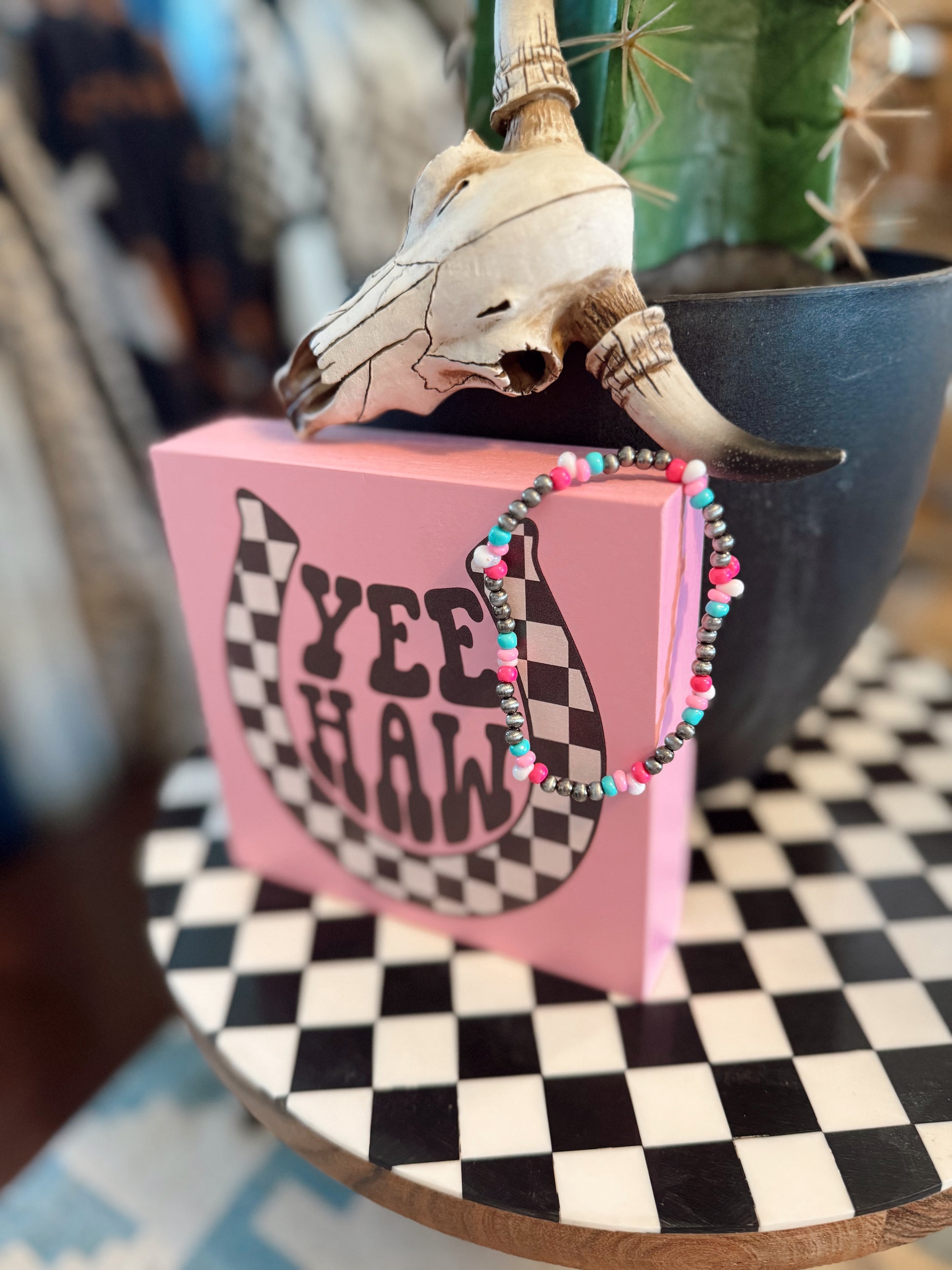 Pink & Turquoise / Navajo pearl bead stretch bracelet