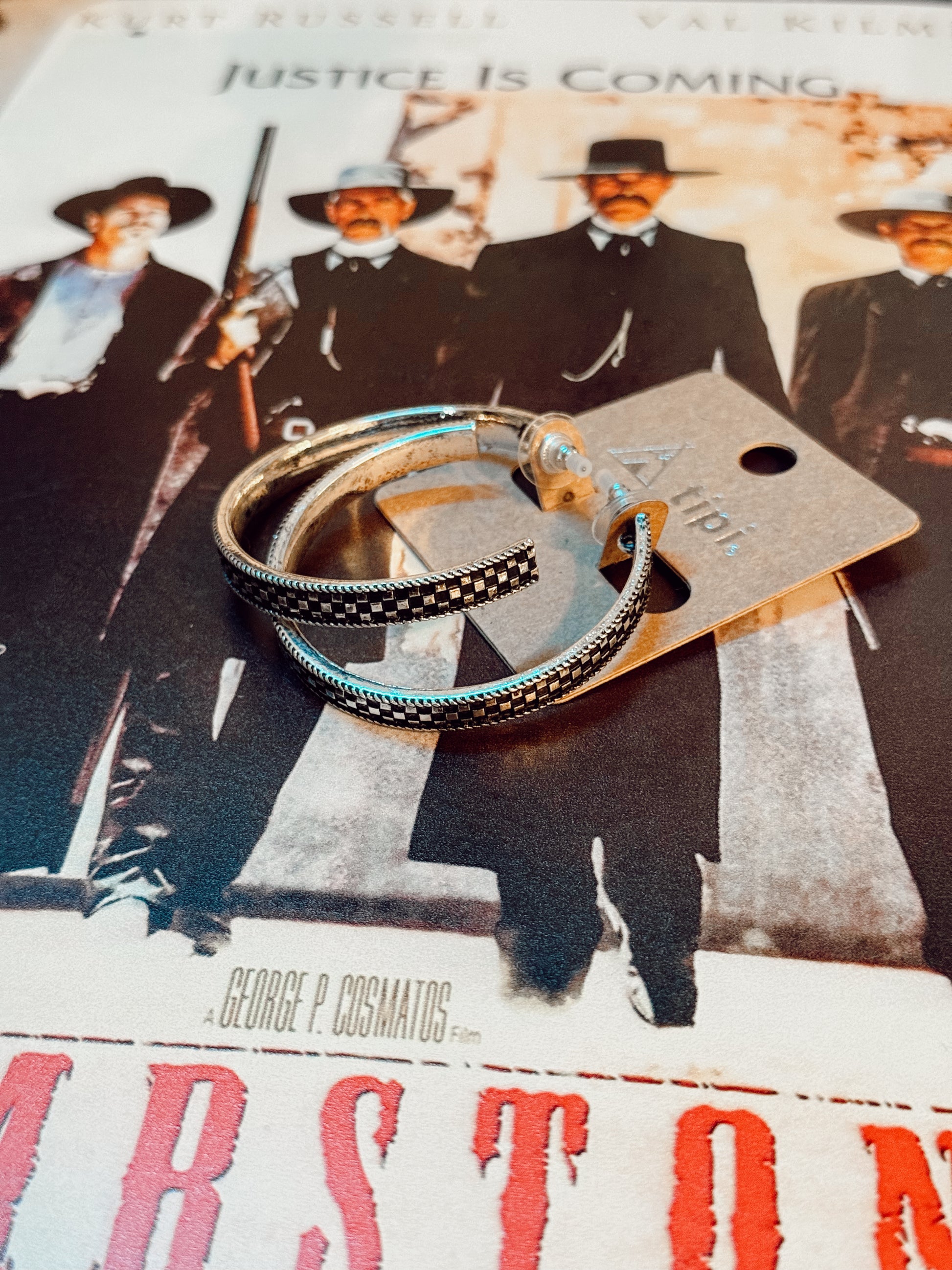 Western Checkered Hoop Earrings